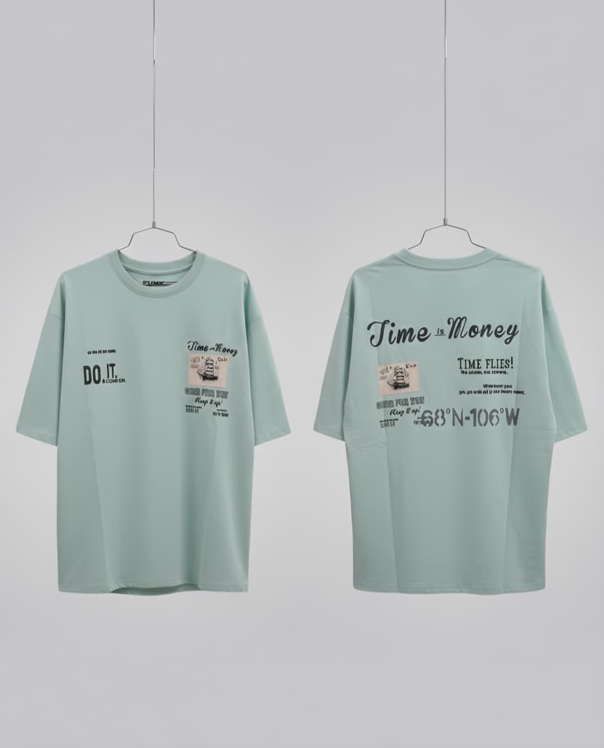 Camiseta de color verde oliva con gráficos que dicen «BACK THE THE GYM» en la parte delantera y trasera