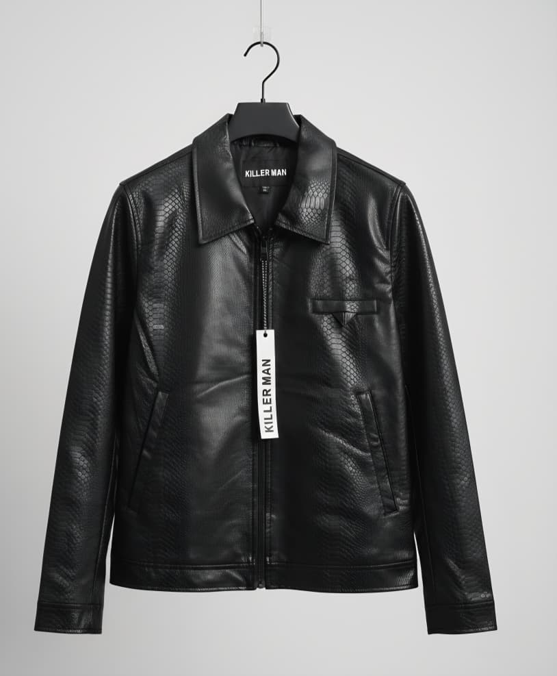 Chaqueta de cuero sintético negra con textura de piel de serpiente de la marca «Killer Man»