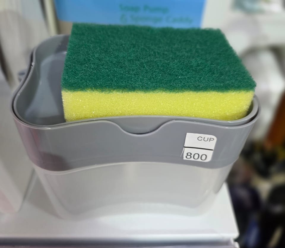 Esponja de plástico 2 en 1 dispensador de jabón para platos exprimidos, bomba de jabón, accesorio de cocina.