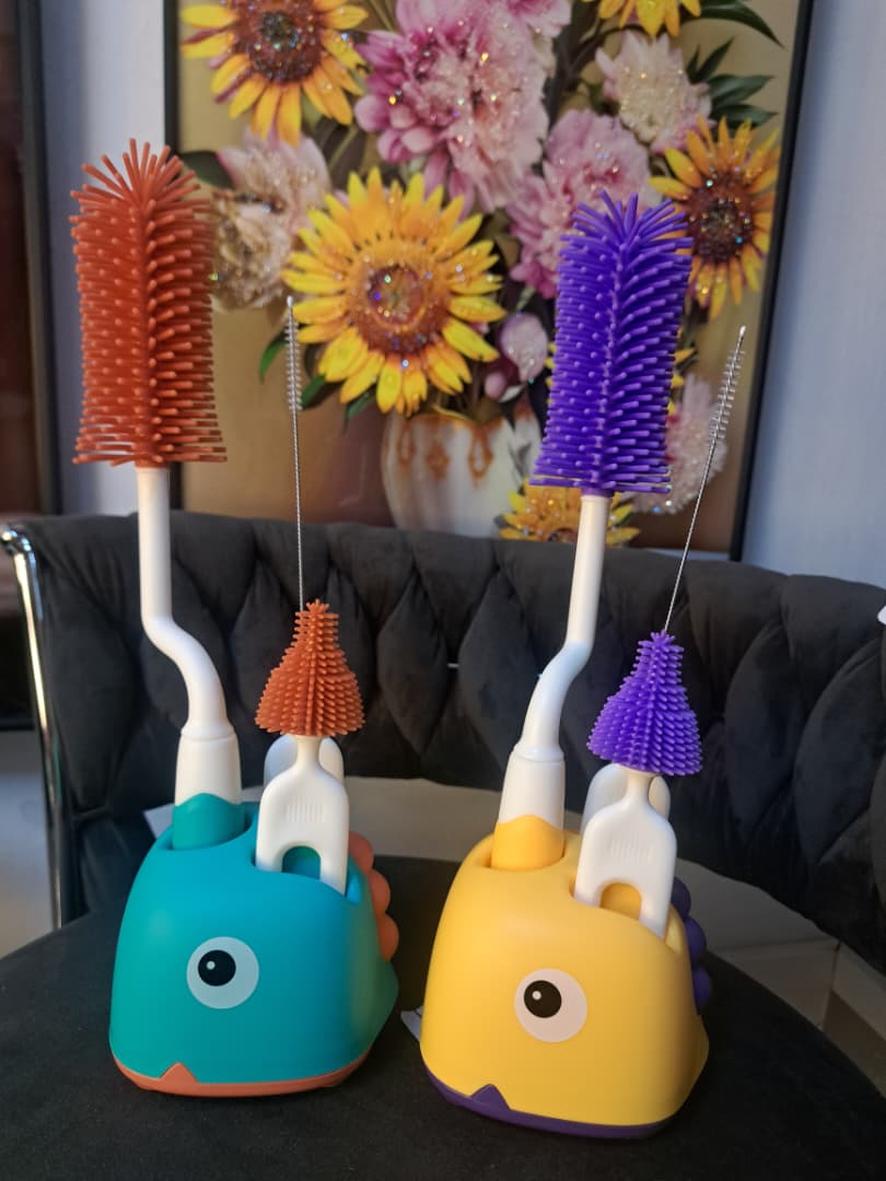 Juego de cepillos de silicona 4 en 1 para biberón, cepillo para pezones, cepillo para biberón, cepillo para pajilla, seguro y duradero, fácil de limpiar y secar, 4 unidades, juego de