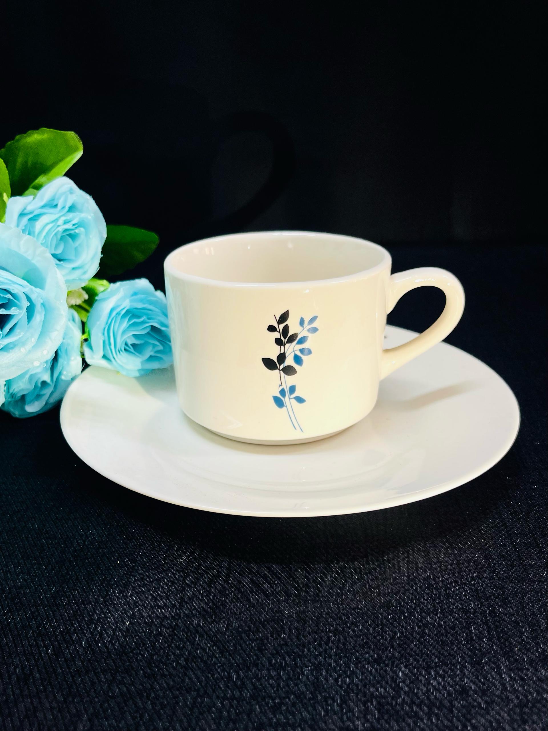 Juego de taza de Te 220ml C/plato flores azules y negras