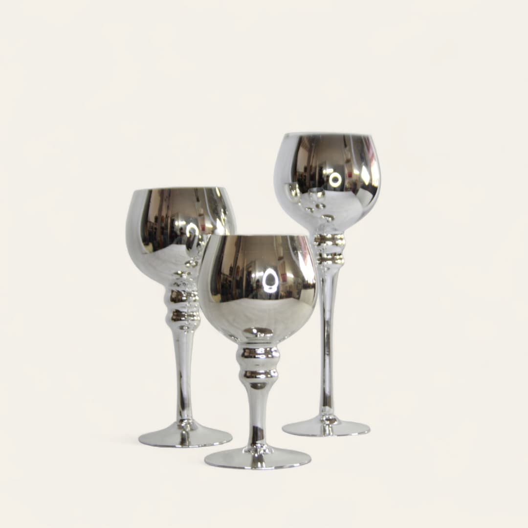 Portavelas de tallo largo, 3 piezas, color plateado degradado y cristal transparente, 11.75, 9.75 y 7 pulgadas de alto.