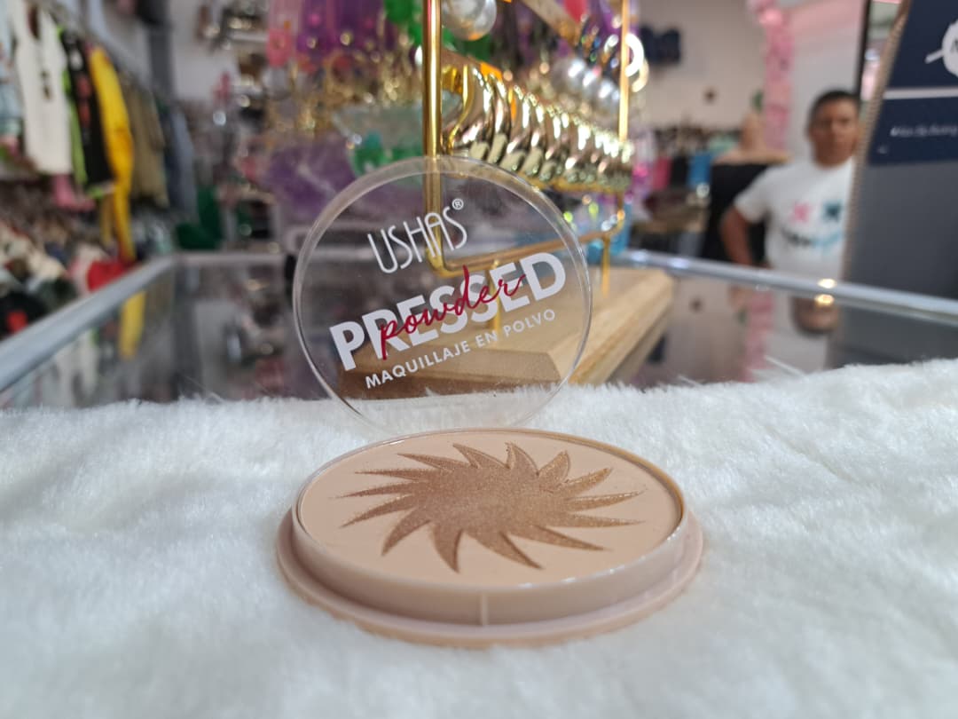 Polvo compacto bronceador de la marca Ushas, conocido como “Bronzer Pressed Powder”